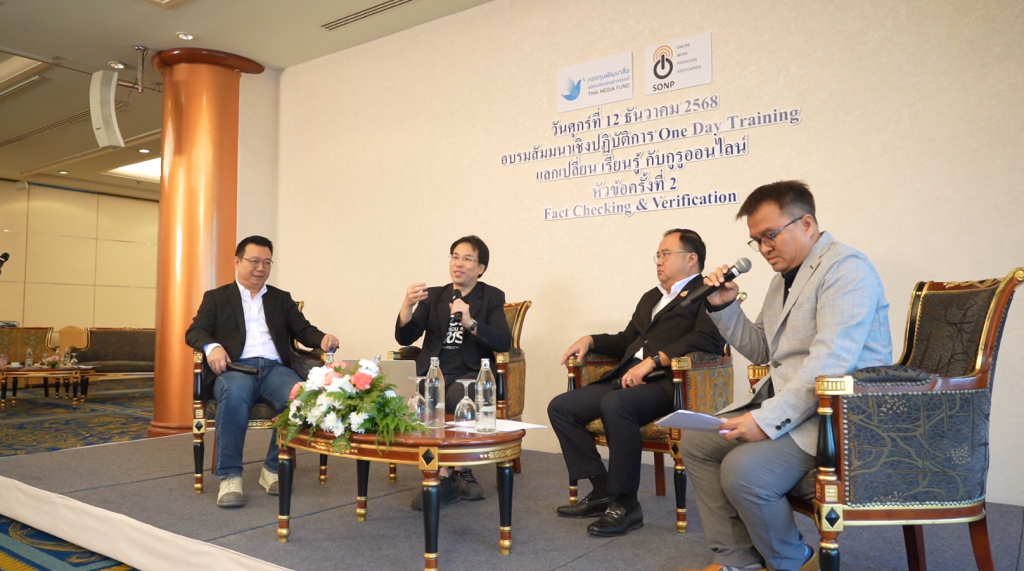 สมาคมผู้ผลิตข่าวออนไลน์ (SONP) โดยการสนับสนุนจากกองทุนพัฒนาสื่อปลอดภัยและสร้างสรรค์ จัดอบรม One Day Training ประจำปี 2568 ครั้งที่ 2 หัวข้อ “Fact Checking & Verification เรียนรู้กระบวนการตรวจสอบข่าวปลอม ภายใต้กรอบจริยธรรมสื่อมวลชน” เมื่อวันที่ 12 ธ.ค. 68 ที่ผ่านมา โดยมีเป้าหมายให้สื่อมวลชนและผู้ปฏิบัติงานด้านข่าวออนไลน์ มีเครื่องมือและกรอบคิดเพียงพอในการรับมือกับข่าวลวงที่ซับซ้อนขึ้นทุกวัน