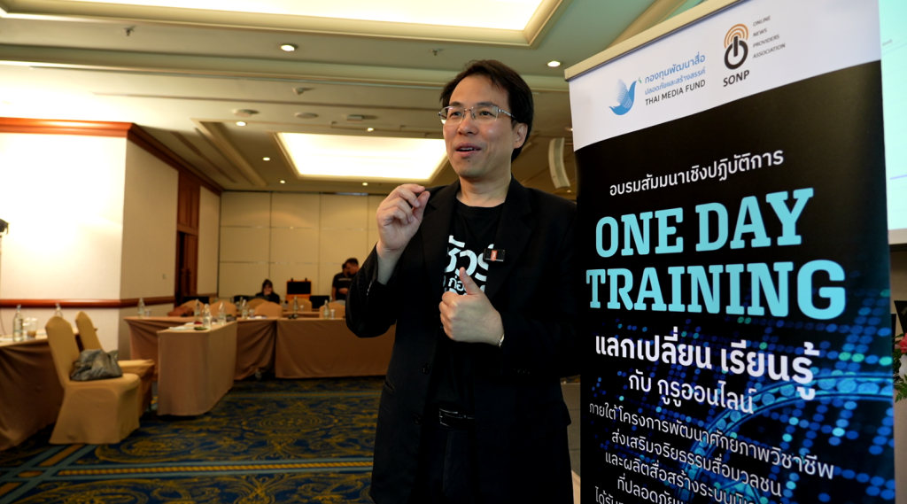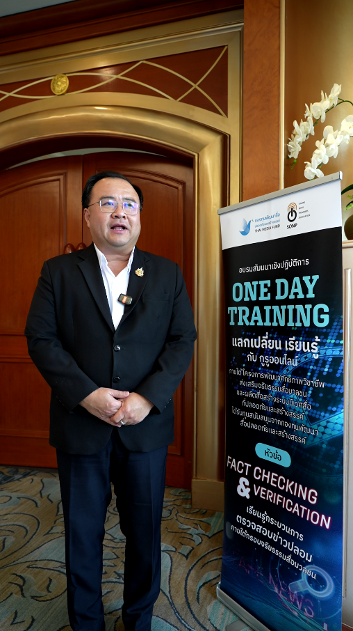 สำหรับโครงการอบรมครั้งนี้เป็นส่วนหนึ่งของ “โครงการความร่วมมือองค์กรสื่อขับเคลื่อนพัฒนาวิชาชีพและส่งเสริมจริยธรรมสื่อ เพื่อสร้างระบบนิเวศสื่อปลอดภัยและสร้างสรรค์” ซึ่ง SONP ร่วมดำเนินการกับกองทุนพัฒนาสื่อปลอดภัยและสร้างสรรค์อย่างต่อเนื่อง โดยเน้นให้ผู้เข้าร่วมไม่เพียงรับฟังบรรยายเชิงทฤษฎี แต่ยังได้ฝึกปฏิบัติจริง ตั้งแต่การตรวจสอบต้นทางข่าว ไปจนถึงการกลั่นกรองเนื้อหาเพื่อสื่อสารเตือนภัยต่อสาธารณะอีกด้วย