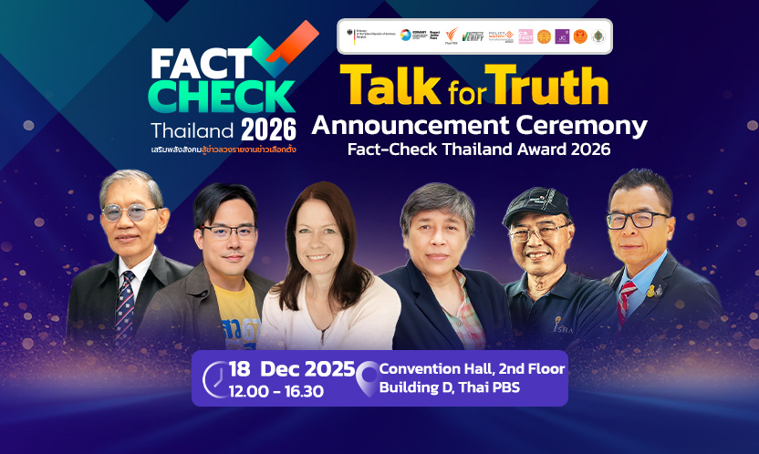 Join forces to help empower Thai society in monitoring and combating misinformation during this crucial national election. Find out more at : www.thaipbs.or.th/FactCheckThailand2026