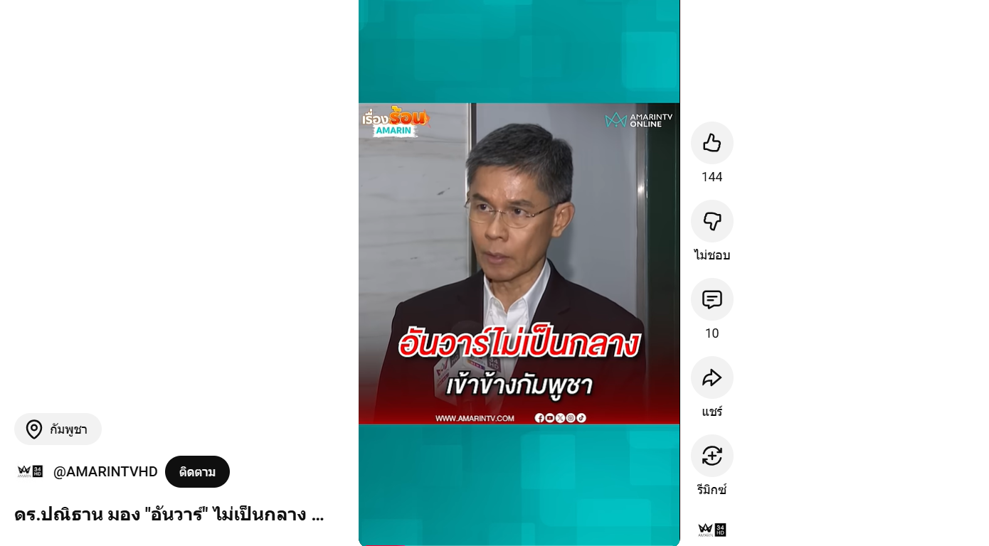 A video clip of Panitan’s interview with Amarin TV, featured on the program “Hot Issues Amarin,” carried the headline: Dr. Panitan views “Anwar” as not neutral—appearing to side with Cambodia, referring to Malaysia’s role as ASEAN Chair. The clip was published on September 24, 2025.